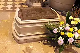 Гробниці Мартіна Лютера та Філіпа Меланхтона розташовані у церкві Всіх Святих.[13][14][15] На гробі Лютера, розташованому під амвоном, напис "тут поховано тіло доктора сакральної теології Мартіна Лютера, який помер у році Христа 1546 року, 18 лютого, у своєму рідному місті Айслебен, проживши 63 роки років, 2 місяці та 10 днів ".[16] Меланхтон проповідував при похованні Лютера.[17] Скринька Лютера похована біля амвона, приблизно на 2,4 метра нижче підлоги нефа.[18] Помітні поховання включають Каспара Циглера, ректора університету.