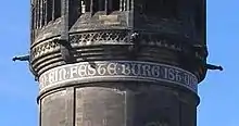 З нагоди четвертого століття з дня народження Лютера у 1883 р. Розпочалася масштабна реставрація Всіх Святих у неоготичному стилі під керівництвом прусського архітектора Фрідріха Адлера його учнем Полом Фердинанда Грота (1859—1955).[5][6][7] Реконструкція інтер'єру включала нинішній стеля з реберного склепіння та пілястри, а також матронею та апсиду . Також 88-metre (289 ft) -будувались усі шпилі, з яких можна отримати гарний вид на місто Віттенберг та навколишню сільську місцевість. Цитата " Ein feste Burg ist unser Gott " («Могутня фортеця — це наш Бог») з одного з гімнів Лютера оточує вежу.[9][11][12]