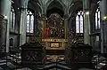 У хорі церкви, захищеному кованими ґратами, під розп'яттям 1594 року поховані герцог Бургундії Карл Сміливий і його дочка Марія Бургундська. Надгробки виконані в стилі полум'янистої готики.