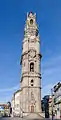 Монументальна вежа церкви, розташована в тильній частині будівлі, була побудована між 1754 та 1763 роками. ЇЇ оформлення також демонструє вплив римського бароко, тоді як весь дизайн був натхненний тосканськими дзвіницями . Башта заввишки 75,6 метрів, панує у місті. До вершини шести поверхів слід піднятися 240 сходинок. Ця велика споруда стала символом міста.