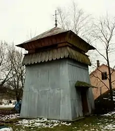Поряд з церквою розташована дерев'яна, квадратова в плані, стовпова дзвіниця збудована у 1850 році.