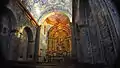 Над головним вівтарем - невеликий підбанник і баня, в інтер'єрі вони теж вкриті кольоровими кахлями з архітектурним декором і орнаментами.