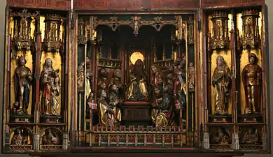 План інтер'єру досить незвичний — хор розташований асиметрично на північ, та двонавний основний простір. Серед оздоблення інтер'єру особливо виділяється головний вівтар роботи Бернта Нотке. Він датується 1483 роком та зображує на центральній панелі сходження Святого Духа на 12 апостолів на День Святої Трійці. Поруч з вівтарем розташована пам'ятна дошка на честь британських моряків, які загинули під час операцій ВМФ Великої Британії на Балтиці (1918–1919 рр.). Галереї церкви багато прикрашені сценами з Біблії, які створені десь у середині 17-го ст. ймовірно різними художниками. Наявний орган церкви датується 1929 роком.[2][3]