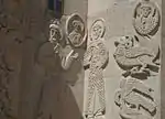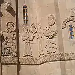 В рельєфах Ахтамарського храму видно безпосередній зв'язок з традиціями так званого сасанідського мистецтва, головним чином в низці іконографічних мотивів. Оригінальний текст (рос.)В рельефах Ахтамарского храма видна непосредственная связь с традициями так называемого сасанидского искусства, главным образом в ряде иконографических мотивов.
