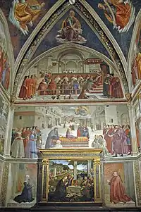 - Каплиця Сасетті, "Житіє Св. Франциска Ассізького " фрески роботи Доменіко Гірляндайо