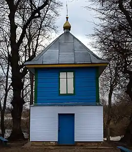 Поблизу церкви з південного боку знаходиться двоярусна дерев'яна дзвіниця по типу «четверик на четверику», побудована 1869 року Накрита чотирисхилим дахом пірамідальної форми з бляшаною покрівлею та декоративною маківкою на завершенні[2][3].