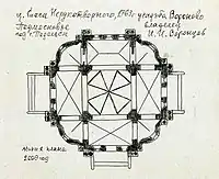 Цегляна, потинькована, довершений зразок російського бароко. За планом центрична, в плані практично квадрат, кути якого заокруглені, але всі форми і декор — барокові. Навіть сходи, розташовані на осі схід-захід не додають архітектурі видовженості. Всі приміщення садибної церкви облямовують центральний об'єм, увінчаний восьмикутною ротондою з куполом. Купол має люкарни для освітлення , архітектурний ліхтарик і цибульчасте завершення з хрестом.