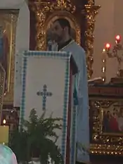 Отець Григорій (Комар) читає проповідь під час маївки.