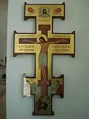 Хрест на стіні в притворі церкви.