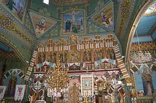 Інтер'єр церкви прикрашає панікадило та інша різьблена дерев'яна церковне начиння (хрести, патериця, аналой, тетрапод, престол, кіот, менора, два п’ятисвічники, процесійний та похоронний хрест, ікона “Розп’яття з пристоячими”). Начиння частково збережена завдяки місцевим жителям, які її ховали у власних домівках під час радянського періоду.[8][9]