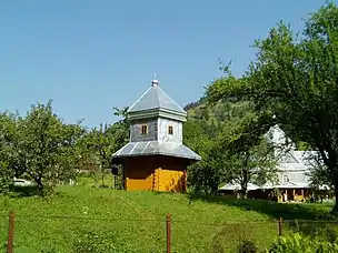 До складу пам'ятки входить також дзвіниця, яка була побудована за різними даними в 1872[2] або 1877[4], 1913[5] роках. Структурно це восьмигранна споруда, перщий ярус якої зі зрубу, а бругий каркасний, оточена опасанням, яке розташоване на вінцях зрубів з шатроподібним дахом. Дзвіниця в 2014 році була перекрита бляхою[2][4][8].