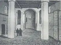 До 1853 року виконано і малюнок Войцеха Герсана, що відображає інтер'єр. На малюнку виділяються горизонтальні уступи північній і південної стін. Лопатка південної стіни стесана врівень з виступом, хоча спочатку вона простягалася вгору і через арочку з'єднувалася зі стоячою з нею в створі колоною. Перемичка отвору дверей в північній стіні, яка спочатку була напівциркульною, вже перероблена, так само як перероблені з малих на великі вікна в другому ярусі.