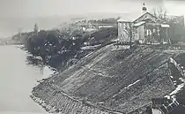 1 квітня 1853 року (за старим стилем) відбувся перший обвал церкви, у воді опинилися частини південного і західного фасадів. На обмірному кресленні південного фасаду, зробленого в тому ж році, видно, що в Німан впало близько 2/3 південного фасаду. В цей же час у воду обвалилися численні поховання, які були біля церкви, в тому числі плита 16-го століття Богуша Багациновича[38].
