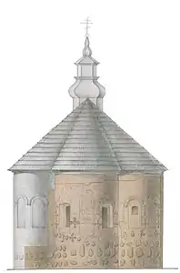 На малюнку Михайла Кулеші церква зображена з південного сходу. Дрібний масштаб ілюстрації не дозволяє говорити про якісь показові деталі. Крім того, композиція малюнка явно романтизована, що дає підставу засумніватися в його документальній точності.