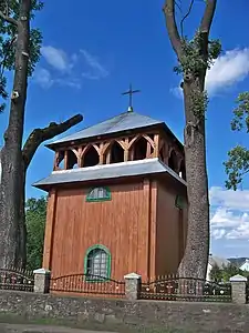 На північний-захід стоїть дзвіниця. Загалом, церква типової конструкції та класичного кольору.