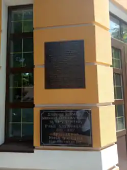 Під пам'ятною дошкою, встановленою на стіні церкви на честь візиту Папи, міститься напис: