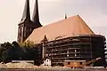 Уже наприкінці 13-го сторіччя продольний неф базиліки з каміння був зруйнований та замінений на трьохнавну залу в стилі цегляної готики, і базиліка стала зальним храмом.[6] Після пожежі 1379 року почалася заміна пізньороманських хорів початкової будівлі на значно збільшений поперечний неф перед хорами та деамбулаторієм. Перебудова була закінчена не пізніше початку 15-го сторіччя.[7] Однак плани щодо будівництва нового продольного нефа, який би відповідав новому деамбулаторію, були реалізовані лише близько 1460 року.[8]. До нового нефа не було включено ніяких суттєвих елементів попереднього ранньоготичного нефа.