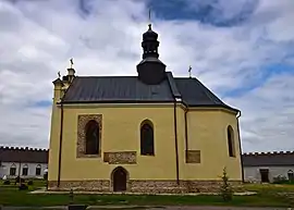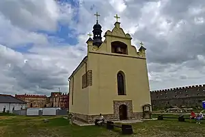 ![]() Замкова церква, вигляд з Лицарської башти | |