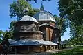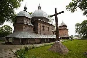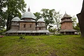 Дерев'яна тризрубна триверха церква має високу квадратну наву, більш низькі п'ятистінний бабинець і вівтарну частину з бічними невеликими криласами. Церква має опасання, три високі верхи на восьмериках. Дахи покриті ґонтом, який перекрили листами бляхи.