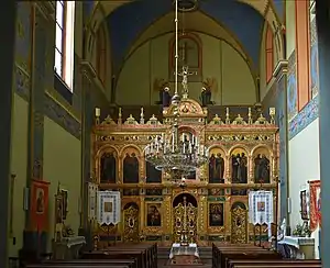 У приміщенні біля бабинця можна побачити іконостас 60-х років ХХ століття від Єжи Новосельського. Цей іконостас був приміщений у каплиці святої Катерини, в якому греко-католицька парафія діяла в 1958—1998 роках.