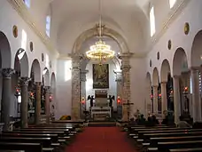 В бокових нефах церкви знаходяться декілька цінних вівтарів. В церковній захристі зберігаються численні зразки підсвічників і церковної посуду, здебільшого барочного стилю. Найціннішим предметом захристі вважається готичний потир з емальованими анжувійськими гербами XIV століттям. Потир безсумнівно є дарунком короля Людовика та його дружини королеви Єлизавети.