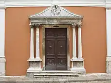 Головний портал церкви був споруджений у 1572 році у маньєристичному стилі, у той час, коли церква була присвячена Богородиці, свідоцтвом чого є зображення її із немовлям на фронтоні. Бокові портали, менші за головний, також датуються XVI століттям. Головні перебудови в барочному стилі були проведені у церкві під час її перейменування у церкву Св. Симеона. До цього періоду відноситься і сучасний головний фасад. На місці апсиди старохристиянської базиліки створена нова вівтарна частина квадратної форми. Її формують дві міцні пілястри, в які упирається широка монументальна арка, і архітрави з кожного боку. З цією добудовою, церква стала суттєво видовженою, і її вівтарна частина набула набагато поважнішошо вигляду. Вівтарна частина була перероблена тому, що хотілося більш урочисто помістити і виставити срібний ковчег із реліквіями святого.