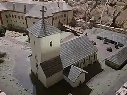 На сході церкви був напівкруглий виступ — апсида. Перед нею стояв центральний неф. Поруч існувала поховальна крипта. При головному вході в храм височіла вежа, що, ймовірно, використовувалася як дзвіниця. Під час археологічних розкопок у церкві було знайдено понад 70 давніх поховань, прикраси та зброю[8][9][7].