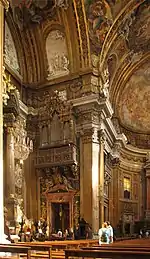 Церква була прийнята за канон для єзуїтських храмів по всій Європі (особливо в Речі Посполитій, у нинішній Україні, в Литві та Білорусі), а також в Латинській Америці. Однією з основних художніх особливостей церкви є унікальна фреска на плафоні церкви. Написані особливим чином фігури створюють ілюзію, що вони літають під стелею і навіть відкидають на нього тінь, хоча насправді вони написані в одній площині.