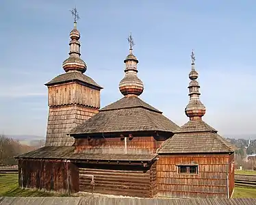 - Nová Polianka, Slovakia (now in Svidník outdoor museum) «Wooden Churches and Folk Architecture of the Carpathian Mountains»(англ.)