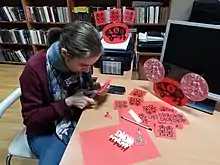 - вирізання за допомогою ножа. Спочатку папір кілька разів складають, кладуть його на пухкий клей, зроблений з попелу і жиру тварин, потім ретельно вирізують на папері візерунок, тримаючи ніж в руці вертикально, і обробляють його за заготовленим зразком. Перевага другого способу полягає в тому, що він дозволяє одночасно вирізати відразу кілька візерунків.