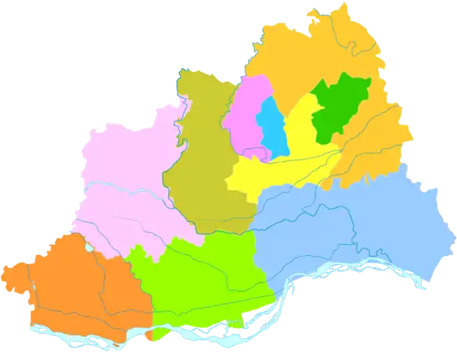 Міський округ поділяється на 4 райони, 2 міських повіти й 4 повіти: