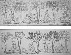 ![]() «Сім мудрих з бамбуковою гаю». Цзі Кан третій зверху (зліва направо) | |