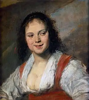 Молоде дівчисько дивиться вбік, одяг незграбний, невихована і простоволоса. Такого декольте не можна побачити на жодній картині Галса. Здається, їй вигукнули нахабний жарт, а вона відповіла ще нахабнішим.