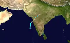 31 травня область низького тиску розвинулася над Східним Аравійським морем і залишалася добре вираженою зоною в тому регіоні до самого вечора[8]. Він зміцнився в депресію над східно-центральним та південно-східним Аравійським морем рано вранці 1 червня, коли знаходився приблизно на 340 км на південний захід від Гоа, 630 км на південь-південний захід від Мумбаї та 850 км на південь-південний захід від Гуджарат[9].