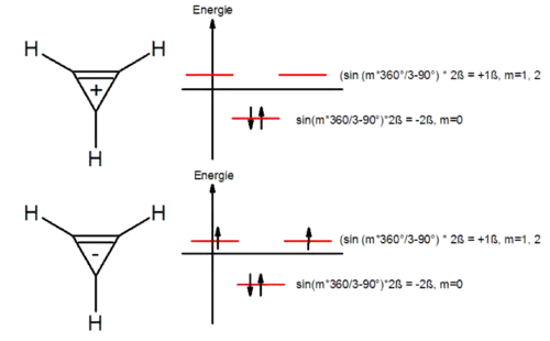 Циклічний полієн, ароматичність якого потрібно перевірити, розташовується вершиною вниз, навколо нього малюється описана окружність. Якщо позначити радіус цієї окружності як 2β, то відносні енергії π-орбіталей розраховуються за формулами
