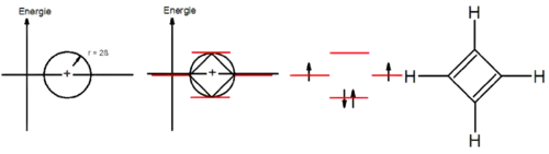 Розрахунок енергій МО кон'югованих циклічних полієнів за методом Гюккеля приводить до цікавого спостереження, що циклічні полієни з атомів Карбону, які мають головну вісь обертання Cn, мають такі енергії МО, що їх можна розмістити у вершинах звичайного -кутника. Молекули, які мають непарну кількість електронних пар ( π-електронів, де - ціле невід'ємне число), повністю заповнюють зв'язуючі й незв'язуючі орбіталі, що є енергетично вигідним. Тому такі сполуки відносяться до ароматичних. При парній кількості електронних пар ( π-електронів) заповнення МО утворює дирадикал, що робить молекулу дуже реактивною, а також є енергетично невигідним. Такі сполуки нестійкі й відносяться до антиароматичних.