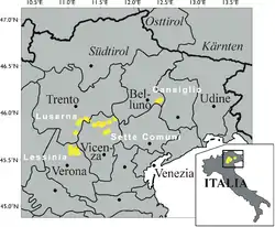 «Сім общин» (цимбр. 7 Comoine, італ. Sette Comuni, нім. Sieben Gemeinden) на півночі провінції Віченца (область Венеція).