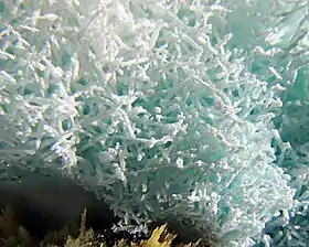 Містить (%): ZnO — 38,19; Al2O3 — 23,92; SO3 — 12,52; H2O — 25,37.