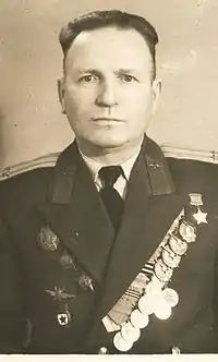 | Командування | командир ескадрильї 70-го гвардійського штурмового авіаційного полку 3-ї гвардійської штурмової авіаційної дивізії 1-го змішаного авіаційного корпусу 6-ї повітряної армії 1-го Білоруського фронту |