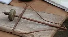 Гуцульські мосяжники для викреслювання кругових ліній на металі використовували схожий на циркуль інструмент — друлівни́к (від нім. Dreule). Він складався з циліндричного стрижня (била), у торець якого вставлявся сталевий стрижень (писачок) з розгалуженим кінцем. При прорізуванні круга одне з вістер (сердешник) знаходилося в центрі, а друге (околичник) окреслювало коло. Вище писачка на било надівався диск-маховик (кочало), а ще вище — поперечний вороток (валок), на кінцях якого був закріплений шнурок (мотузок), що проходив через отвір у верхньому кінці била. Обертанням валка мотузок намотувався на било, а далі порухами валка догори-донизу било з писачком приводилося в обертання[2].