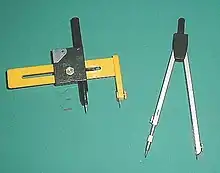 - Пропорційний циркуль — пристрій для зменшення або збільшення відрізка в певну кількість разів, а також поділу його на рівні частини.
