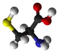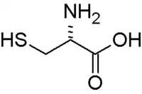 Цистеї́н — одна з амінокислот, L-ізомер якої входить до складу білків. Надзвичайно важливий для формування третинної структури білків завдяки здатності утворювати дисульфідні містки й фіксувати наближеними у просторі ділянки протеїну віддалені по послідовності. Цистеїн — аліфатична амінокислота, яка містить SH-групу.[2] Позначення: Cys, C. Кодони: UGU, UGC.