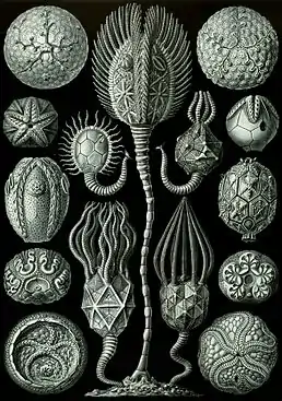 ![]() Cystoidea. Ілюстрація з книги «Краса форм у природі», 1904. | ||||||||||