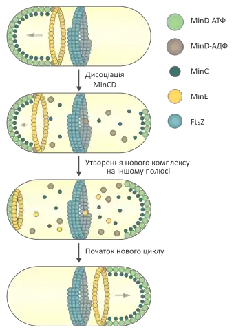 - MinC — інгібітор полімеризації FtsZ;