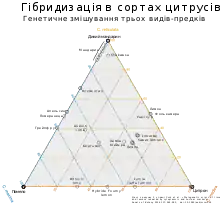 - Танжело — Citrus × tangelo (C. reticulata × C. maxima або C. × paradisi)