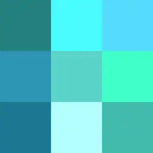 - Кольору, що знаходиться чітко на півшляху між синім і зеленим у моделі HSV.