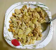Чаат (гінді चाट, chaat) — страва індійської кухні у вигляді гострої перекуски, що часто подається з візків на вулицях міст Індії та інших країн Південної Азії. Назва страви походить від слова хінді चाट, cāṭ — «делікатес», від चाटना, cāṭnā — «самкувати»[1]. Всі варіанти чаату засновані на смаженому тісті із додаванням інших інгредієнтів. Зазвичай до складу входять шматочки картоплі, смажений хліб, боби та приправи. Різноманітні варіації включають алоо-тіккіс (з цибулею, коріандром, іншими приправами), бхел-пурі, дахі-пурі, пані-пурі, дахі-вада, папді-чаат і сев-пурі. Звичайними інгредієнтами є дахі (кефір), дрібно порізана цибуля і коріандр, сев (висушена локшина) і чаат масала — суміш спецій, що складається з висушеного порошку манго, кмина, імбира, кала-намака, солі, чорного і червоного перця. Страва подається на металевій пластині або листку банану, згорнутого у формі миски.