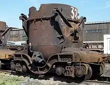 Ківш сигароподібної форми зварюють з сталевих листів і футерують зсередини вогнетривкою цеглою. Товщина футеровки стінок становить 200—315 мм, а днищ 315—380 мм. Згори на ковші є отвір овальної форми, крізь який чавун заливають у ківш і виливають. Для зливання чавуну з ковша його необхідно повертати навколо поздовжньої осі. Для обертання ковша є механізм обертання, розміщений на одному з майданчиків чавуновоза.