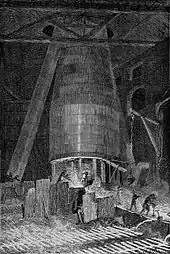 З початком використання чавуновозних і шлаковозних ковшів ливарний двір разом з доменною піччю був піднятий над рівнем нульової позначки, щоб чавун і шлак, випущені з печі, могли жолобами стікати у ковші, встановлені на залізничних коліях під ливарним двором.