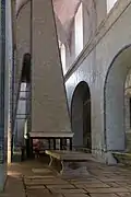 Побудований у формі арки аби пересилювати навантаження від стискаючих сил і передавати їх на фундамент.